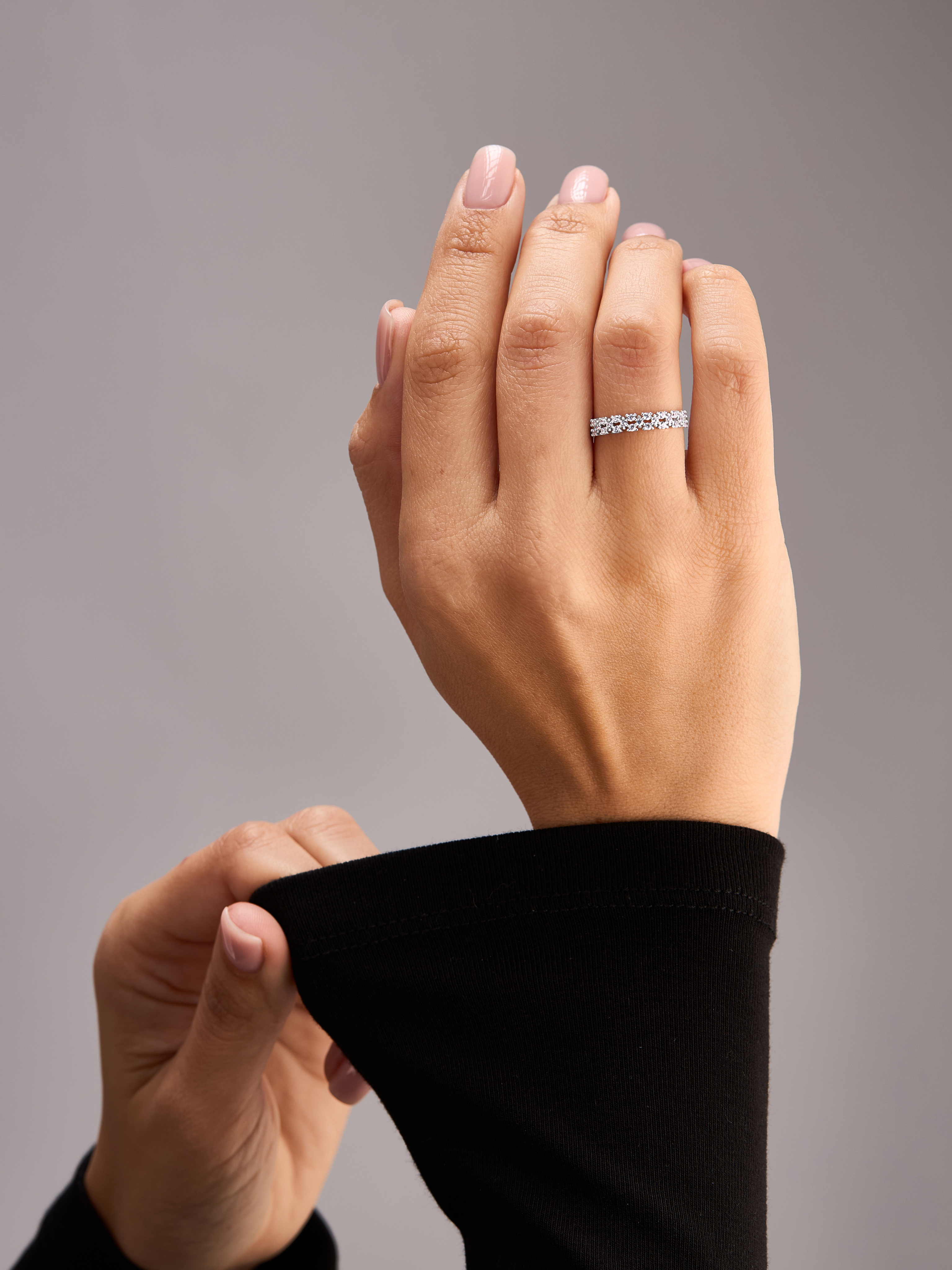 Серебряное кольцо с камнями в изящном дизайне - это модное украшение, которое эстетично дополнит любой образ. Ювелирное изделие из коллекции бренда Голдино изготовлено из гипоаллергенного материала - покрытого родием серебра 925 пробы, украшено вставкой в виде натуральных камней – фианитов. Это помолвочное кольцо с видом дорожки, предназначено для повседневного ношения и особых моментов. Такой вариант отлично подойдет девушке в качестве подарка в день рождения, годовщину или предложение сердца, а также станет символом любви для любимой женщины. Украшение кольцо дорожка с камнями идеально подходит для женщин любого возраста, включая 18 лет и старше, подчеркивает индивидуальность и добавляет шарм в повседневный и праздничный стиль. Колечко с фианитами символизирует вашу любовь, преданность и уважение. Продукция ювелирной фабрики Goldino – это продукты высочайшего качества, которые сочетают в себе мастерство и эстетику. Кольцо, выполненное из серебра 925 пробы - результат работы блестящих мастеров ювелирного завода.
