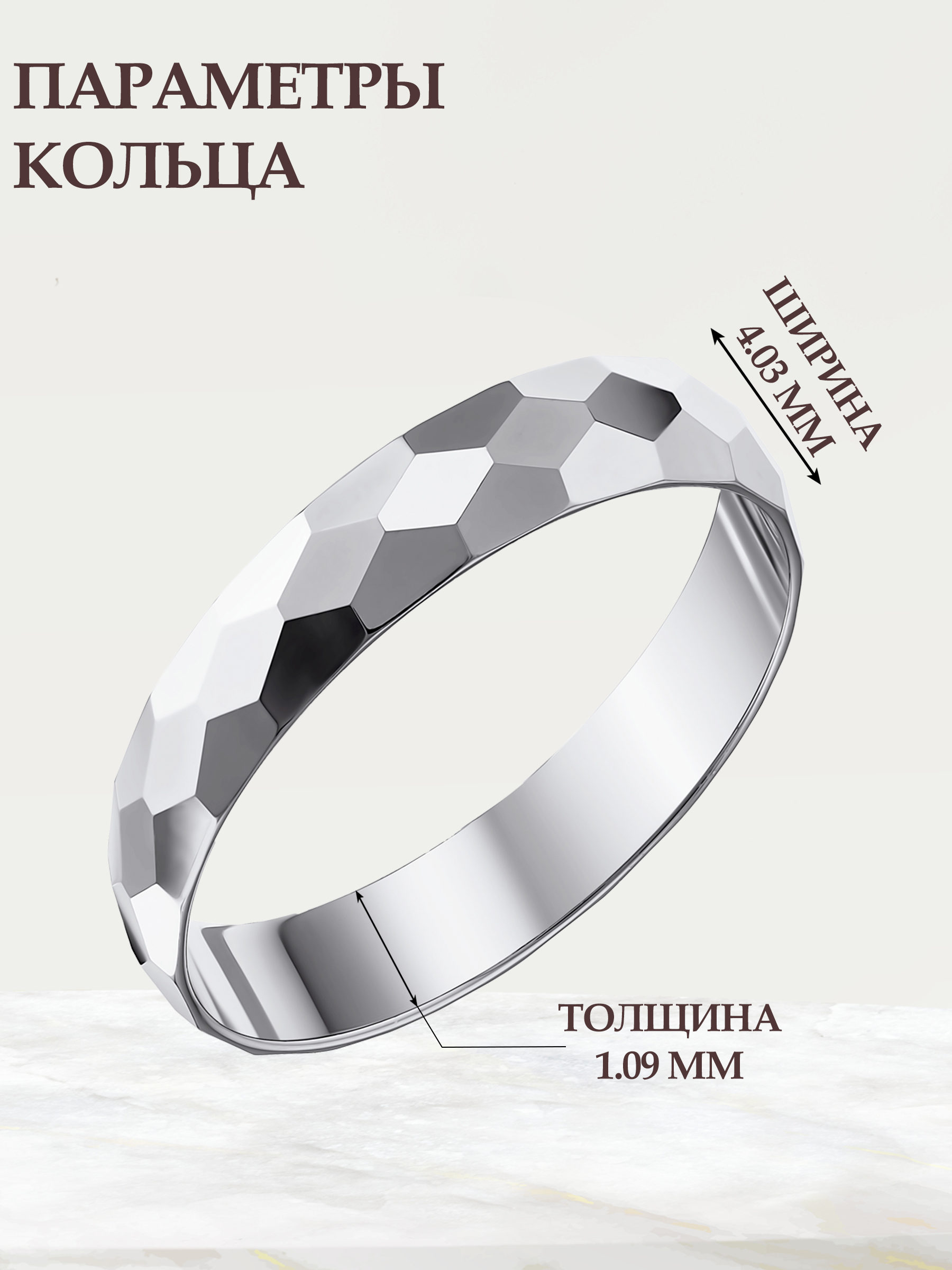 Алмазная обработка позволяет каждой грани сиять, добавляя блеск и элегантность. Такое кольцо идеально подойдет как для повседневного ношения, так и для особых случаев: помолвки или свадьбы. Оно будет отлично смотреться на пальце как мужчин, так и женщин.