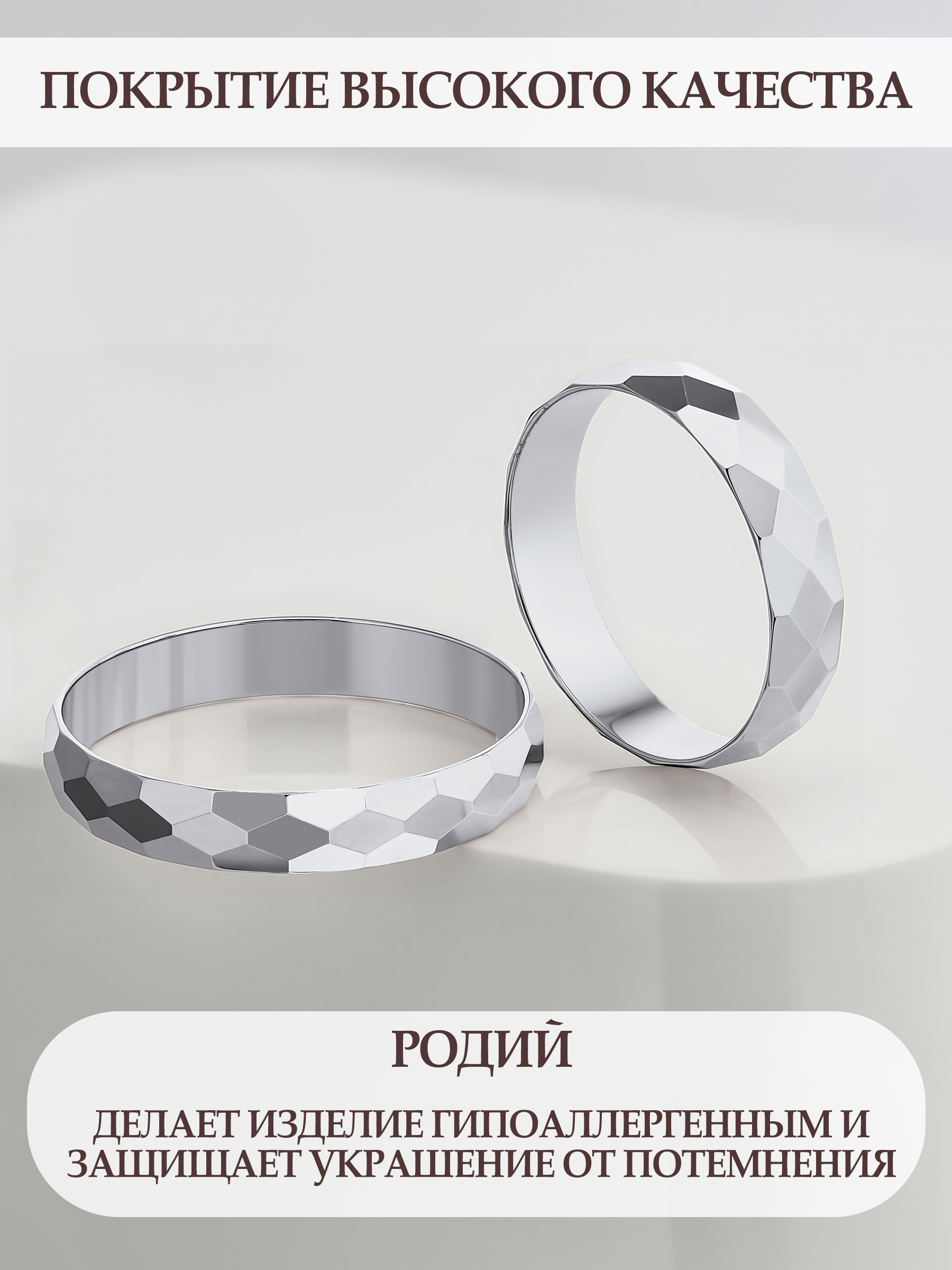 Покрытие родием обеспечивает дополнительную защиту от потемнения и делает изделие гипоаллергенным. Благодаря этому кольцо не только прекрасно выглядит, но и безопасно для кожи.